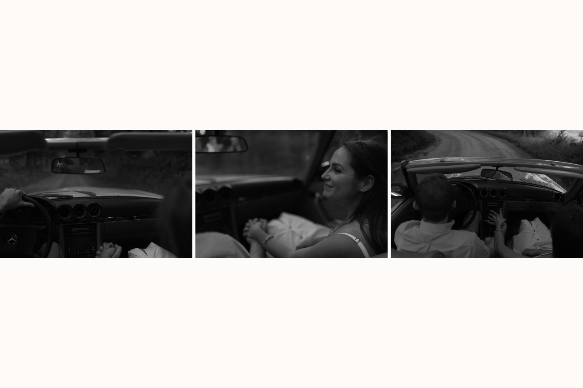 candid engagement photos in a vintage car